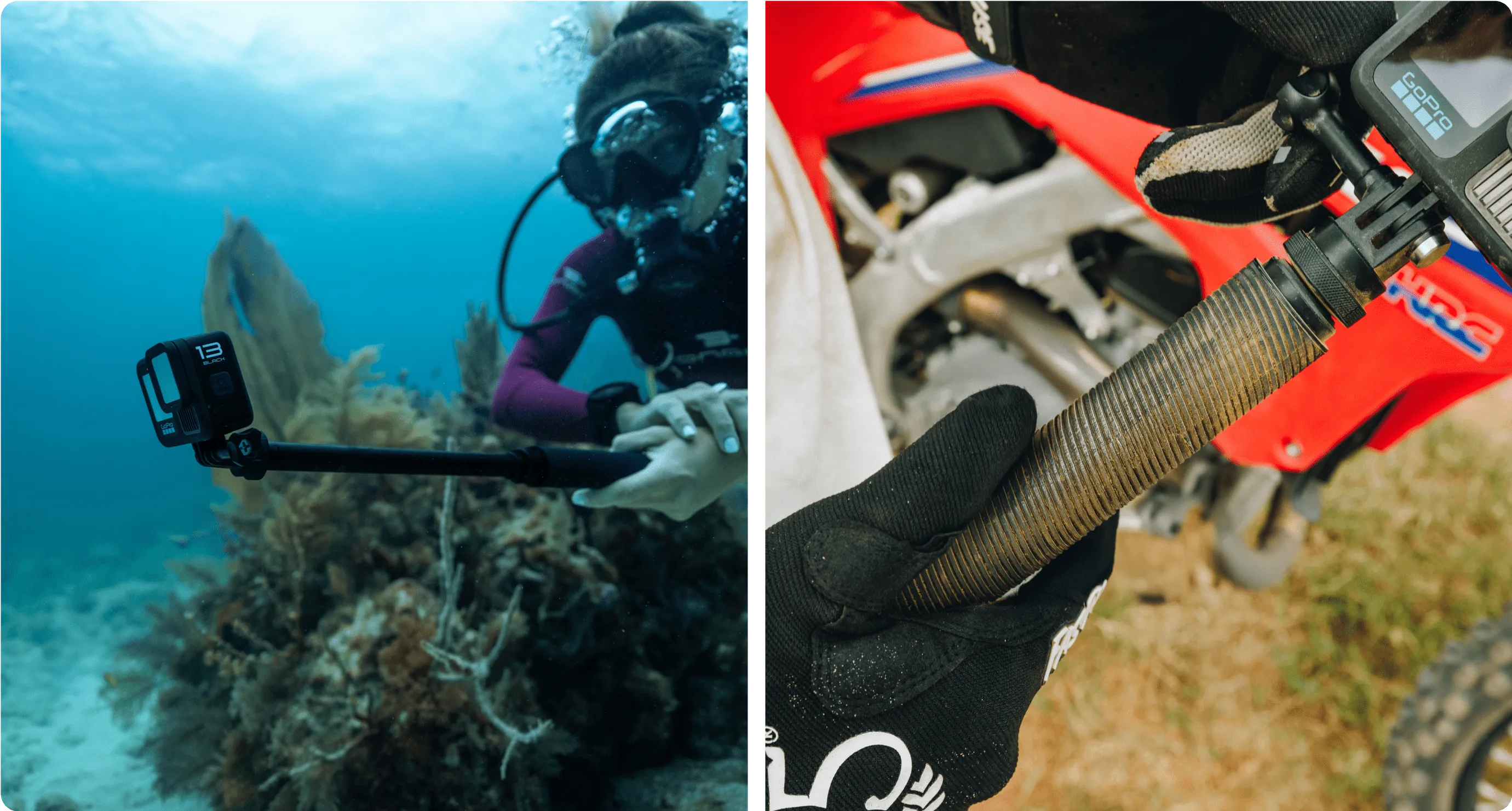 Con una extensión de 120 cm y un plegado de 25 cm, éste bastón extensible es ideal para capturar contenido de selfies, elevarse por encima de la acción o acercarse a ella. Cuando se utiliza con cámaras de 360°, desaparece por completo de la toma, lo que permite increíbles tomas de autocaptura que parecen grabadas por otra persona.