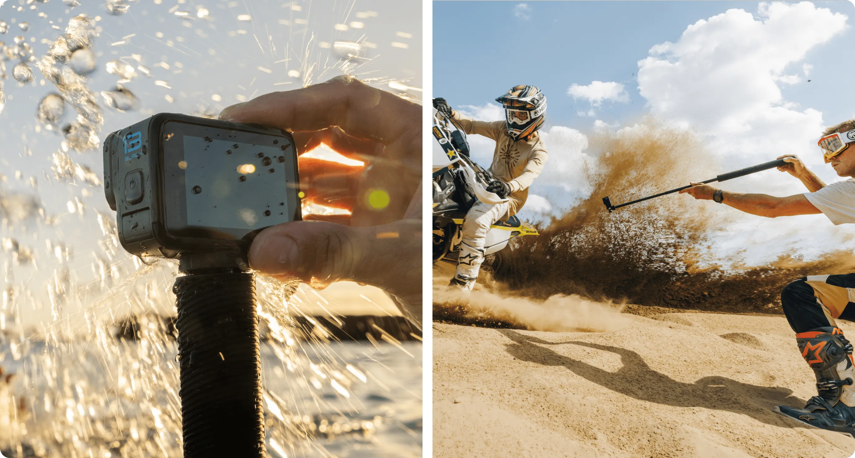 Captura nuevas perspectivas asombrosas, desde tomas aéreas que parecen grabadas por un dron hasta tomas por encima de la acción en las que el bastón desaparece por completo de tu contenido en 360°. Este bastón extensible de fibra de carbono premium se extiende hasta unos increíbles 270 cm y se reduce a unos compactos 39 cm, te ofrece una mayor variedad de puntos de vista, tanto si practicas snowboard como si capturas la escena de un concierto.